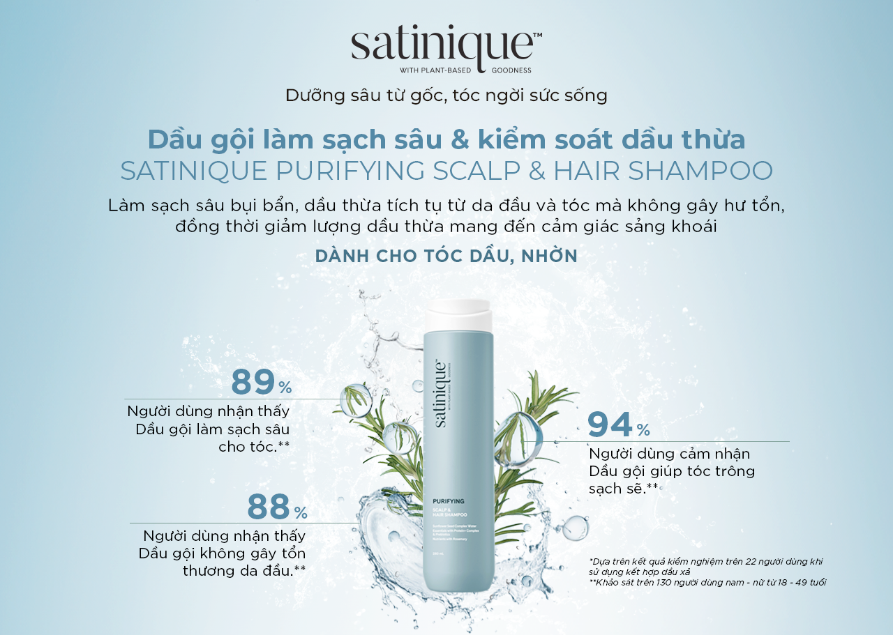 Đừng để tóc dầu, da đầu nhờn ảnh hưởng đến phong độ và sự tự tin mỗi ngày. Hãy để Satinique Purifying giúp bạn chinh phục mái tóc sạch sâu – khỏe mạnh – bồng bềnh tự nhiên.