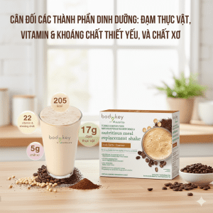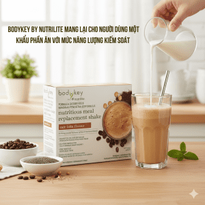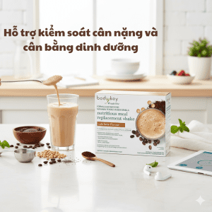 - Thực phẩm Bodykey Nutrilite – vị cà phê được áp dụng thành tựu của các nghiên cứu dinh dưỡng và quản lý cân nặng, sản phẩm mang lại một khẩu phần ăn giàu dinh dưỡng và thơm ngon với mức năng lượng được kiểm soát, giúp bạn có sức khỏe tốt và quản lý cân nặng hiệu quả.