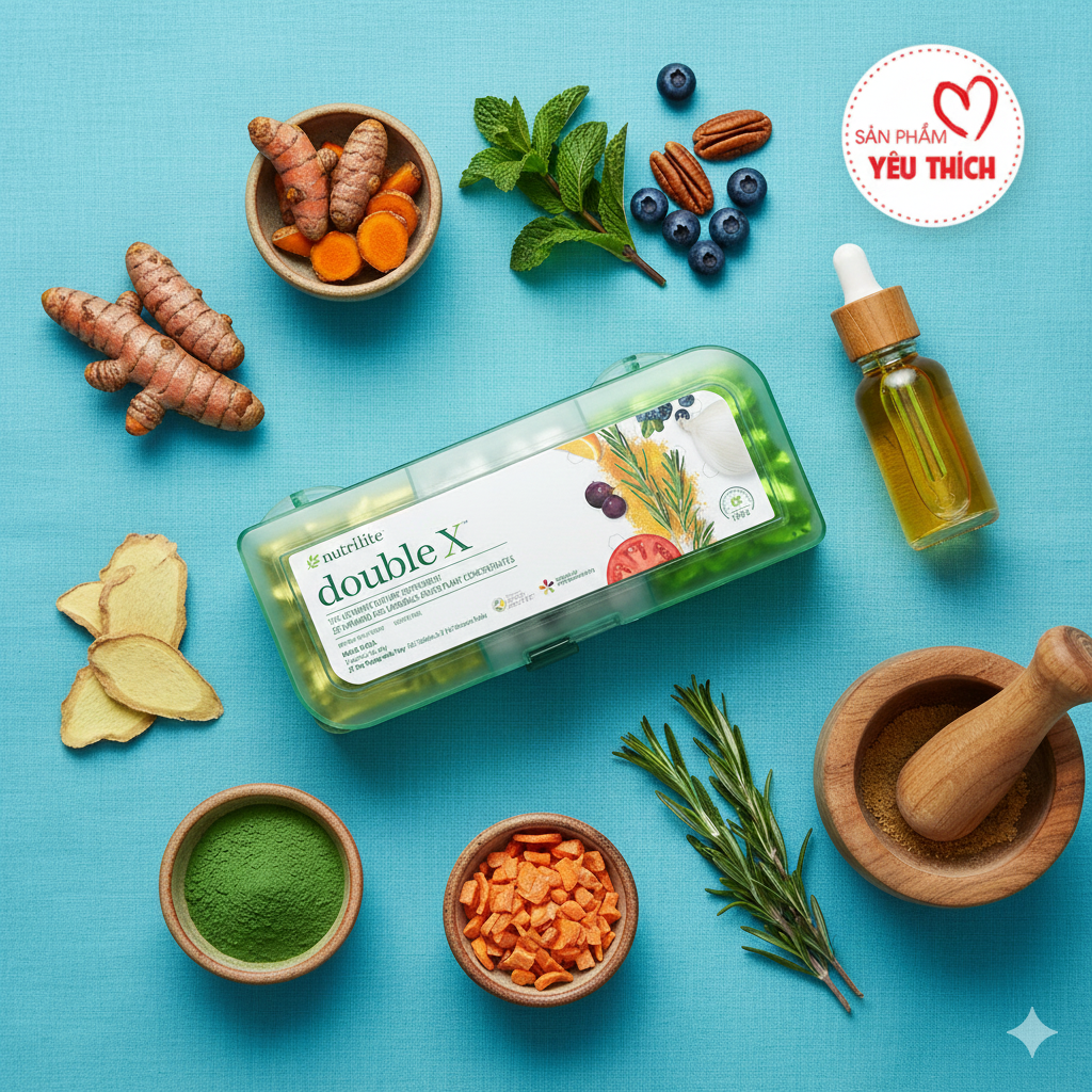 Thực phẩm bảo vệ sức khỏe Nutrilite Double X với hỗn hợp độc đáo Phyto Protect™ được sáng chế độc quyền kết hợp cùng 12 vitamin, 10 khoáng chất và dưỡng chất thực vật Phytonutrient từ 22 loại trái cây, rau củ, thảo mộc giúp hỗ trợ kích hoạt cơ chế phòng vệ của cơ thể. Đồng thời sản phẩm giúp tăng cường sức khỏe, nâng cao khả năng chống oxy hóa và giảm lão hóa mang đến dáng vẻ trẻ trung, tràn đầy sức sống.