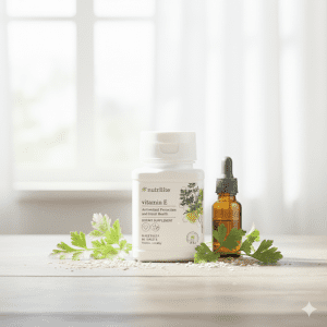 Nutrilite™ Vitamin E bổ sung hỗn hợp vitamin E, selen và bột đông khô ngò tây, hỗ trợ chống oxy hóa và hỗ trợ tốt cho tim mạch.