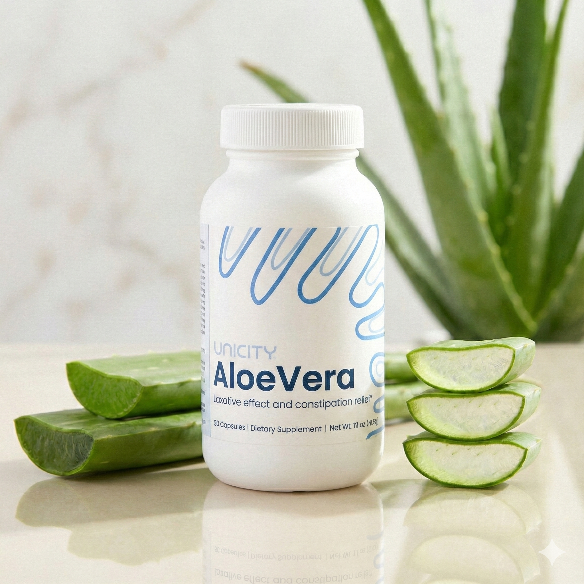 Viên uống Aloe Vera là thực phẩm bảo vệ sức khỏe đến từ thương hiệu Unicity nổi tiếng toàn cầu, được sản xuất tại Hoa Kỳ. Với thành phần chính là chiết xuất từ lá lô hội tươi (Aloe Ferox Mill), sản phẩm mang đến giải pháp hỗ trợ cải thiện tình trạng táo bón hiệu quả và an toàn, phù hợp cho người trưởng thành có hệ tiêu hóa kém.